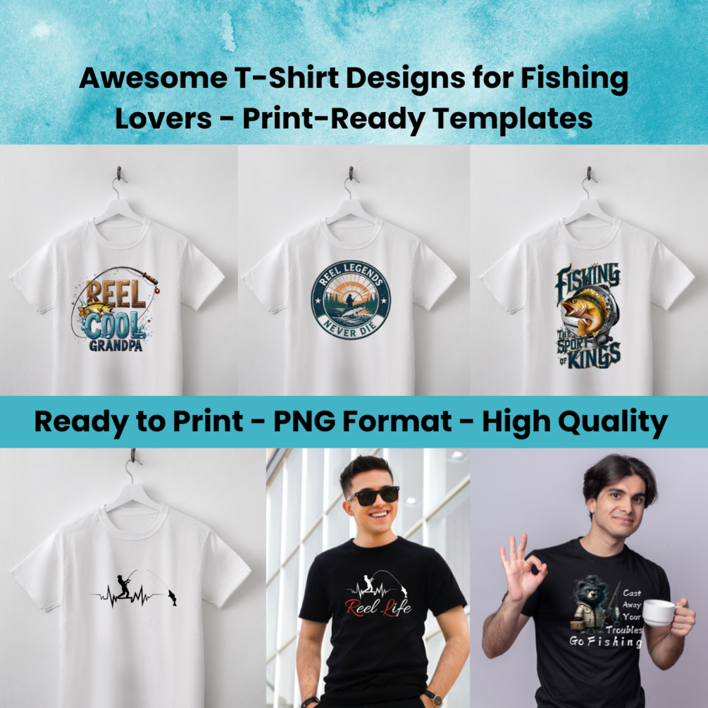 Vintage Fishing T-Shirt PNG Bundle – Ready-to-Print Classic Designs for Fishing Enthusiasts
